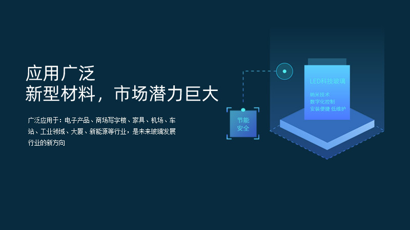 廣泛應(yīng)用于:電子產(chǎn)品、商場(chǎng)寫字樓、家具、機(jī)場(chǎng)、車站、工業(yè)領(lǐng)域、大廈、新能源等行業(yè),是未來(lái)玻璃發(fā)展行業(yè)的新方向